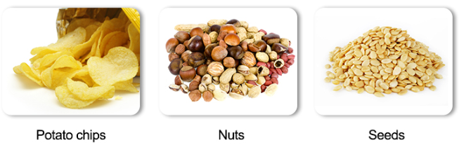It is suitable for automatic packaging of granular strip, sheet, block, ball shape, powder and other products. Such as snack, chips, popcorn, puffed food,dried fruits, cookies, biscuits, candies, nuts, rice,beans, grains, sugar, salt, pet food, pasta, sunflower seeds, gummy candies, lollipop, Sesame.