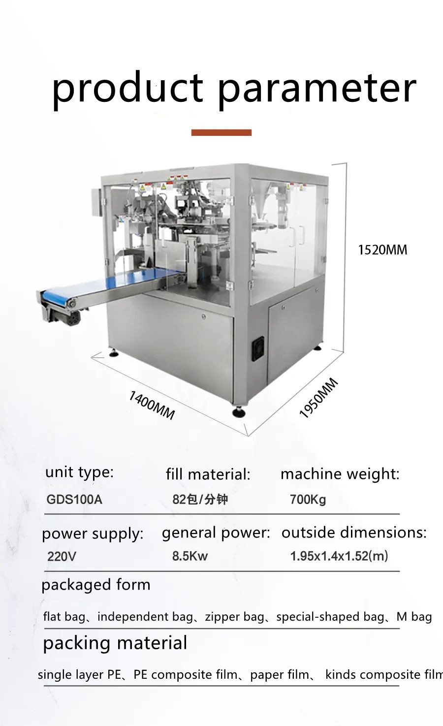 - Machin nan antye adopte yon sistèm kontwòl servo konplè, yon konsepsyon estrikti mekanik inovatè ak yon sistèm transmisyon. Nan operasyon gwo vitès, li toujou an sekirite epi serye, pèfòmans li solid epi ki estab, epi li dirab. Anbalaj la antye otomatik, ak fonksyon oto-verifikasyon, sa ki ka evite anbalaj vid oswa anbalaj ki manke. Vitès la ka rive nan 82 sak/min.