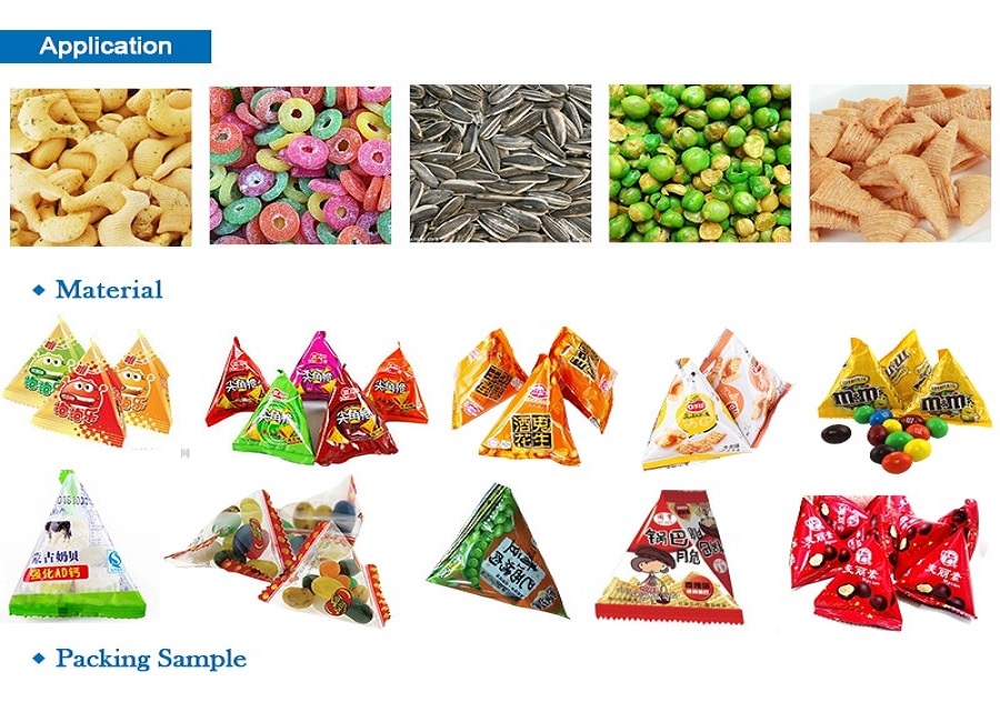 Triangle bag packing machine is suitable for pack block, ball shape, powder